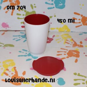 Tupperware allegra beker 450ml wit/rood met deksel (DM 704)