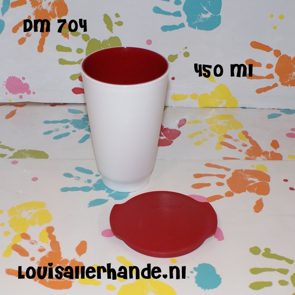 / Tupperware allegra beker 450ml wit/rood met deksel (DM 704)