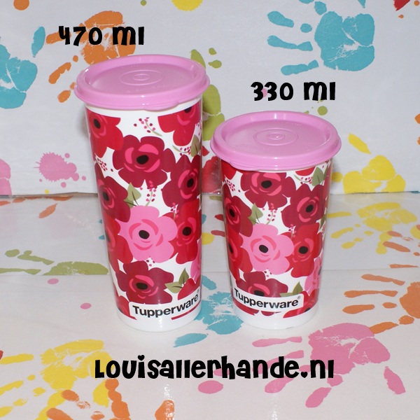 Tupperware set van 2 bekers met rozen afbeelding 470ml plus 330ml