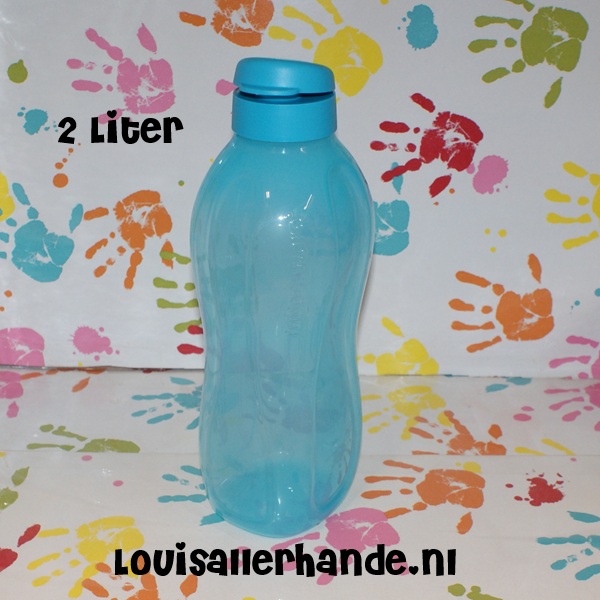 Tupperware eco fles plus 2 Liter Blauw met fliptopdop (sportdop/clickdop)