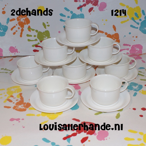 Tupperware 2dehands set van 8 x kop en schotel wit (1214)