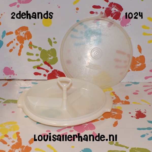 / Tupperware 2dehands vintage hapjesschaal met drie vakjes en draagoog (1024)