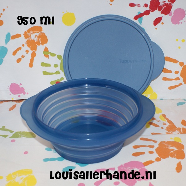 inhoud 950ml. Dit bakje kan uitgeklapt worden tot kom wanneer ze