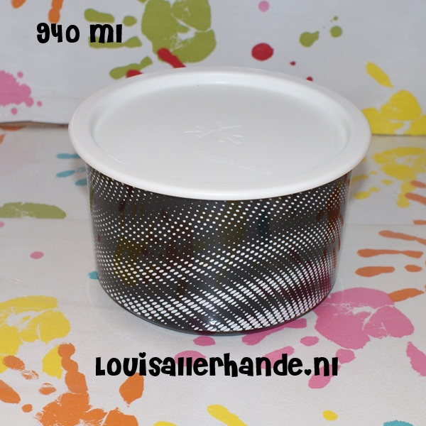 / Tupperware one touch trommel 940 ml zwart / wit