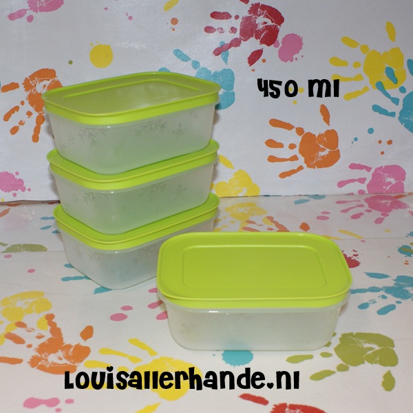 Tupperware set van 4x diepvries doos plus 450ml met appelgroen deksel