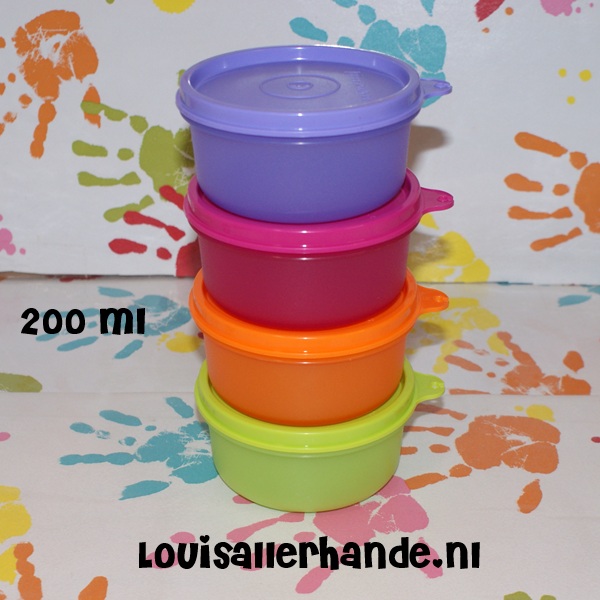 Tupperware dessert quatro 4x 200ml groen / oranje / roze en paars
