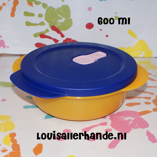 Tupperware crystal wave 600ml oranje met blauw deksel