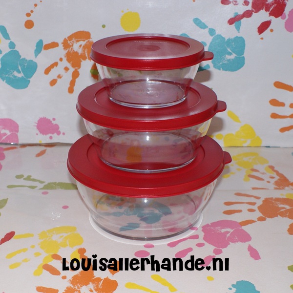 Tupperware set 3 x clear kom met rood deksel 810ml, 480ml en 210ml