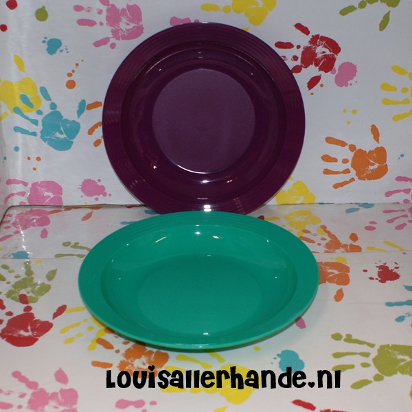 inhoud 550ml diameter 25,5 cm. groen / paars.