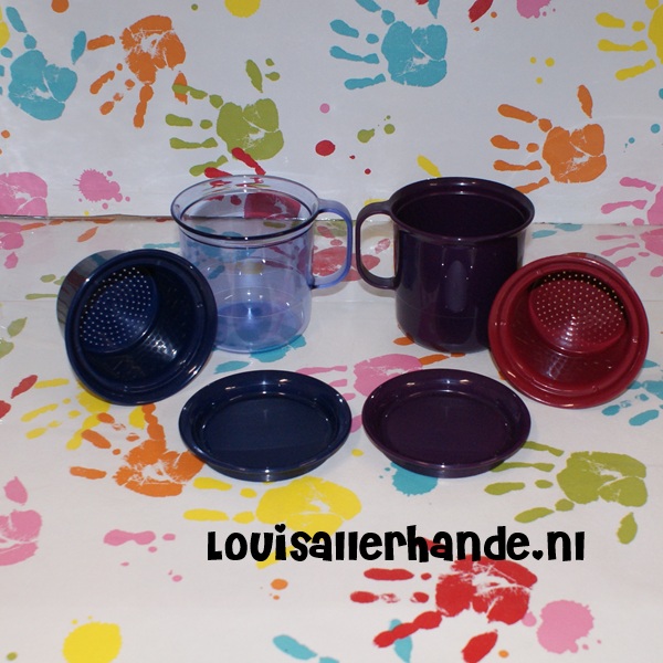 / Tupperware set van 2x thee solo blauw en paars 350ml