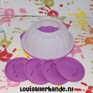 Tupperware puddingvorm met vier verschillende vormpjes wit / paars