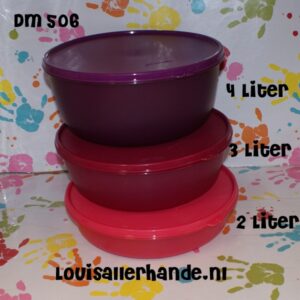 Tupperware set 3x ruimte kom / schaal1x 2 L , 1× 3 L en 1× 4 L roze paars tinten (DM 506)