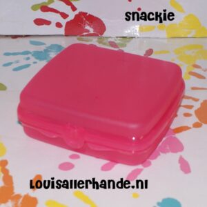 Tupperware snackie geel met afbeelding gezicht en huizen