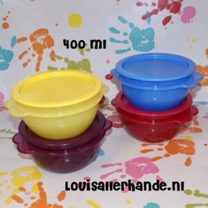 Tupperware set van 4 verschillende kleuren one touch schaaltjes 400ml