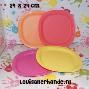 Tupperware set van 4 trendy borden 24 x 24 cm roze/geel/oranje en licht rood